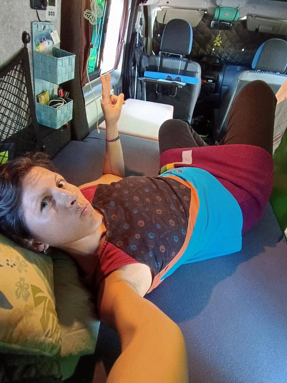 Zudem kommt auf diesem Mini-Roadtrip noch dazu, dass ich meine speziellen Schlaf-Oropax vergessen habe einzupacken (und auch noch so manch anderes praktisches Gadget wie z.B. den Selphie-Stick oder eine die Ohren wärmende Haube). Ohne meine Oropax hab ich einen sehr leichten Schlaf und wache bei jedem fremden Geräusch auf. Und glaub mir, es gibt viiiele fremde Geräusche unterwegs. Und die perfekte Einstellung für die Standheizung im Van hab ich auch noch nicht gefunden, entweder es ist zu heiß oder zu kalt – und das je nach Einstellung sogar wechselweise durch die Nacht hindurch 🚐